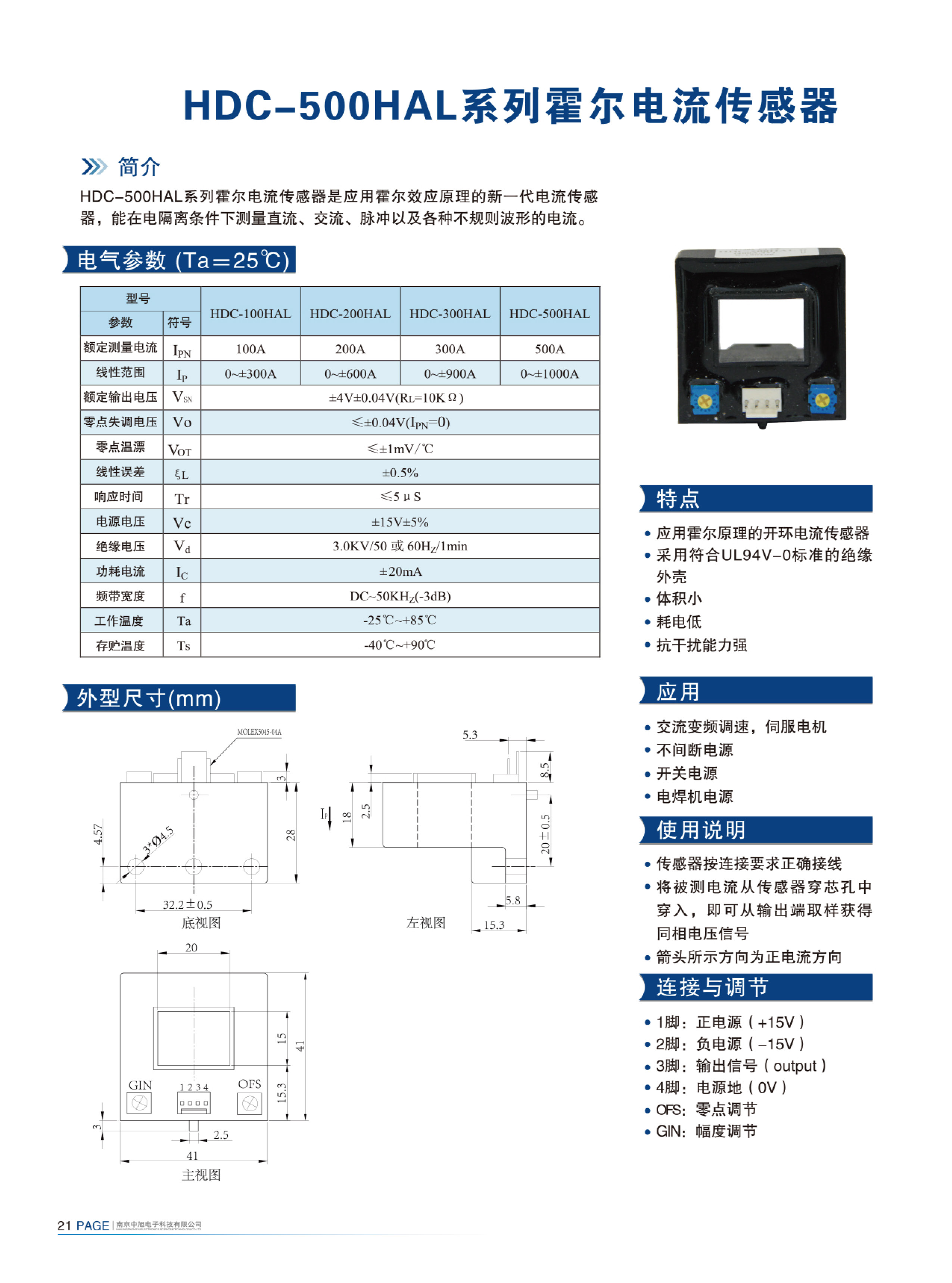 HDC-500HAL series Hall current sensor is a new generation of current sensor using the principle of Hall effect. It can measure currents of DC, AC, pulse and various irregular waveform under electrical isolation.