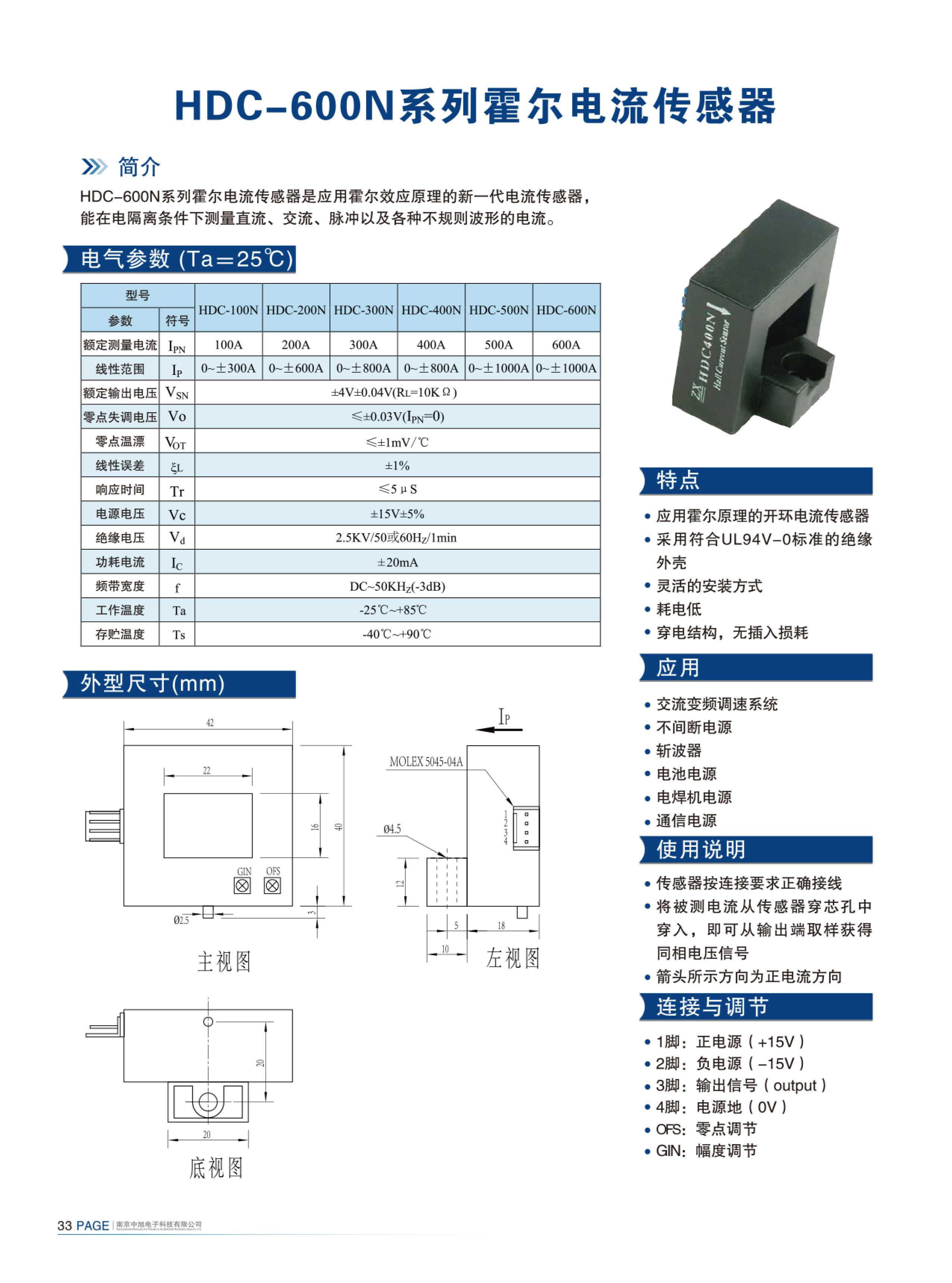 HDC-600N系列霍爾電流傳感器是應用霍爾效應原理的新一代電流傳感器,能在電隔離條件下測量直流、交流、脈沖以及各種不規則波形的電流。