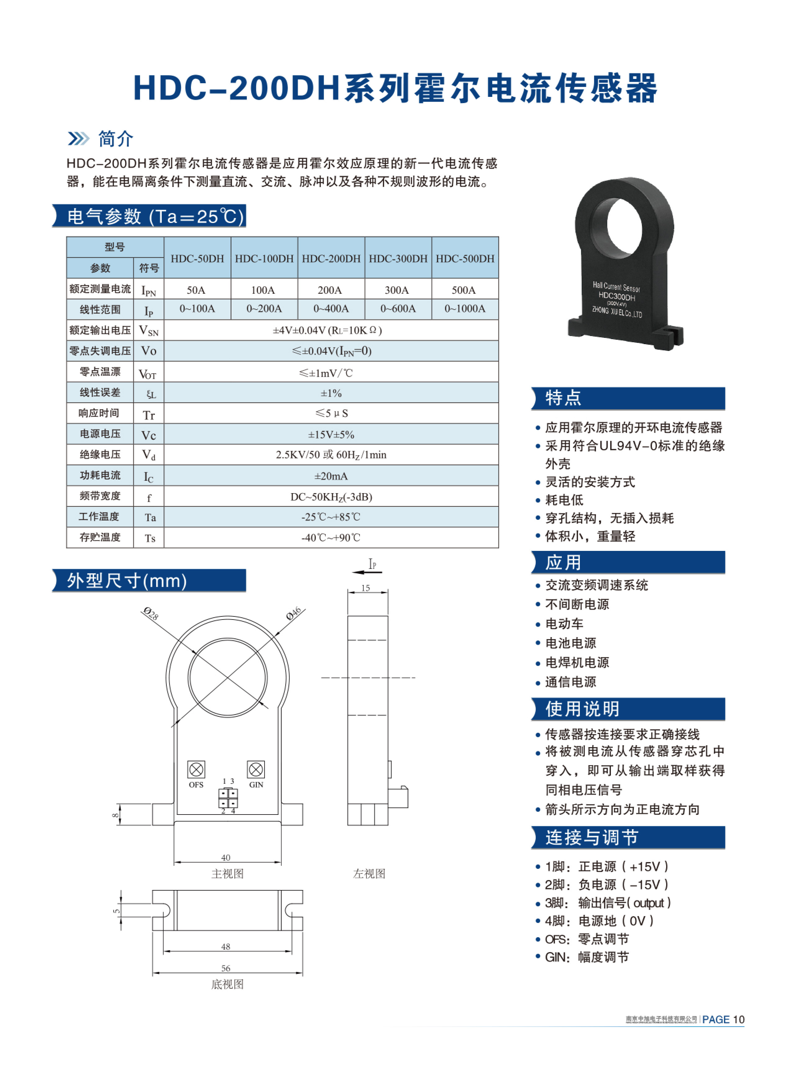 HDC-300DH系列霍爾電流傳感器是應用霍爾效應原理的新一代電流傳感器,能在電隔離條件下測量直流、交流、脈沖以及各種不規則波形的電流。